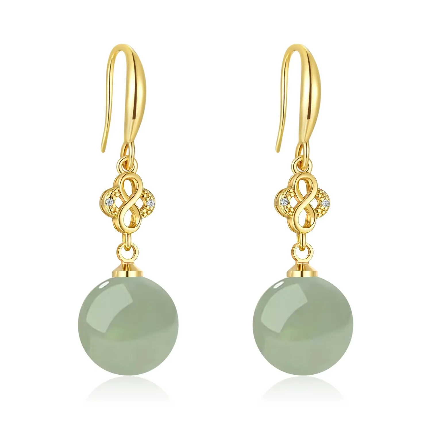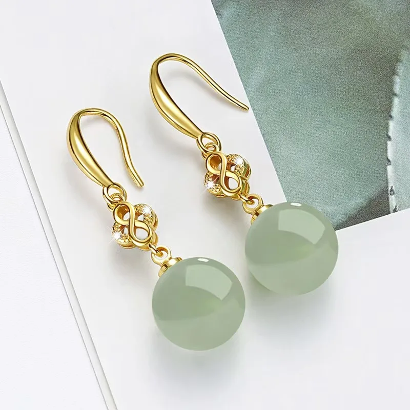 Noble temperament Hetian jade earrings Green Pearl 18K Gold 925 Sterling Silver Stud Earrings for Women Fine Jewelry